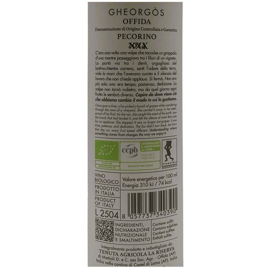 3 x Pecorino di Offida Docg Gheorgos Vino Bianco Biologico FIVI Tenuta la Riserva 3x75cl