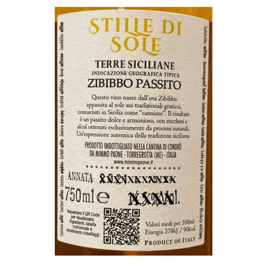 Zibibbo Passito Naturale Vino Bianco Terre Siciliane IGP Mimmo Paone 75cl in astuccio