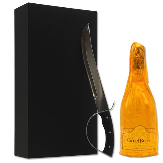 Sciabola per Champagne in scatola regalo da Sabrage con bottiglia di Cà del Bosco Franciacorta 75cl