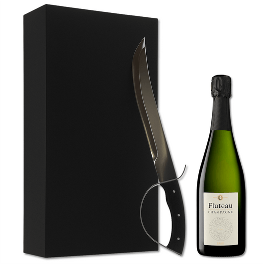Sciabola per Champagne in scatola regalo da Sabrage con bottiglia di Champagne Fluteau Echo 75cl