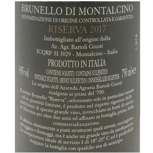 Brunello di Montalcino Riserva Docg 2017 Bartoli Giusti 14%vol